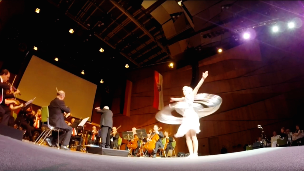 Kreation der Idee. Spezielle Artistik-Inszenierung durch Andrea Engler zu den ausgewählten Musiktiteln. Umsetzung und Regie in Absprache mit dem Dirigenten, der Location und der Artistin.