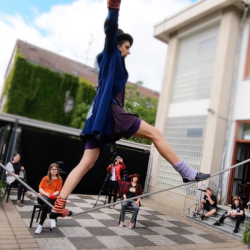 Online ab Freitag, 10.07. um 20 Uhr: Die Kleinkunst-Bühne »Café Extra« bietet bis zur Wiedereröffnung Kultur per Videostream an. Neben Musikacts und Kabarettisten ist Seiltänzerin Annette Will zu Gast im Garten des Café Extra Büttelborn.